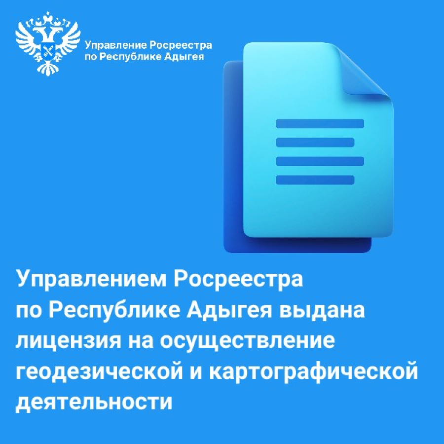 Управлением Росреестра по Республике Адыгея выдана лицензия на осуществление геодезической и картографической деятельности