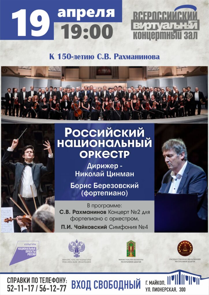 В Государственной филармонии Адыгеи в честь празднования 150-летия Сергея Рахманинова пройдет трансляция концерта Российского национального оркестра из Концертного зала имени П.И. Чайковского Московской государственной академической филармонии.