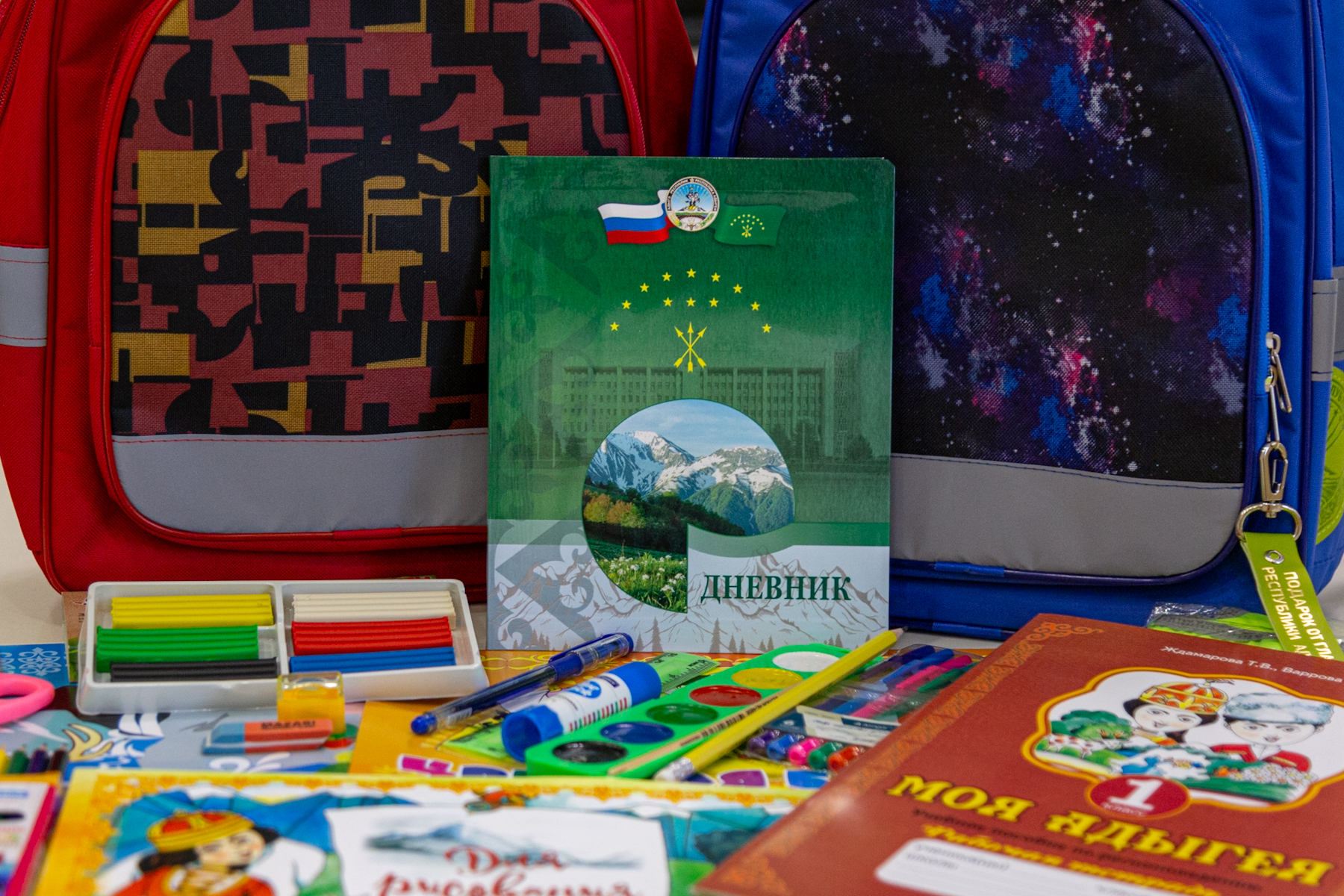 Кроме того, специально для каждого первоклассника подготовлен один из основных школьных документов – дневник. Там будет и познавательная информация о России, о государственных символах страны. А из учебного пособия по регионоведению «Моя Адыгея» ребята смогут узнать справочную информацию о республике, которая отражает национальный колорит. Там есть изображение национального костюма, орнамента и государственных символов региона.