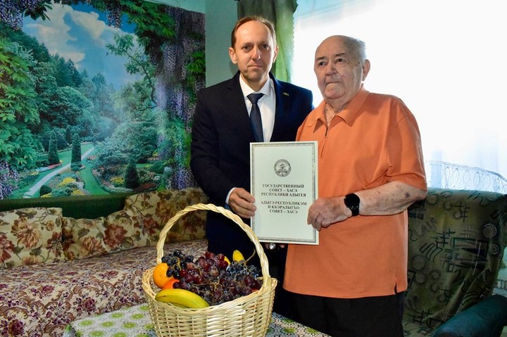Глава Майкопского района Михаил Марьин передал благодарность Госсовета Хасэ Адыгеи за подписью спикера парламента Владимира Нарожного за многолетний труд и в связи с празднованием 100-летия со дня основания Майкопского района почетному жителю Тульского сельского поселения Владимиру Шубину.