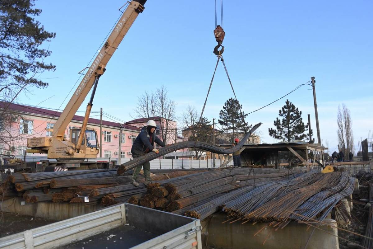 Руководитель региона проинспектировал ход строительных работ. На объекте уже залит фундамент, началось возведение каркаса здания.