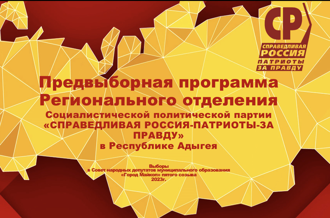 Предвыборная программа Регионального отделения Социалистической политической партии "СПРАВЕДЛИВАЯ РОССИЯ – ПАТРИОТЫ – ЗА ПРАВДУ" в Республике Адыгея