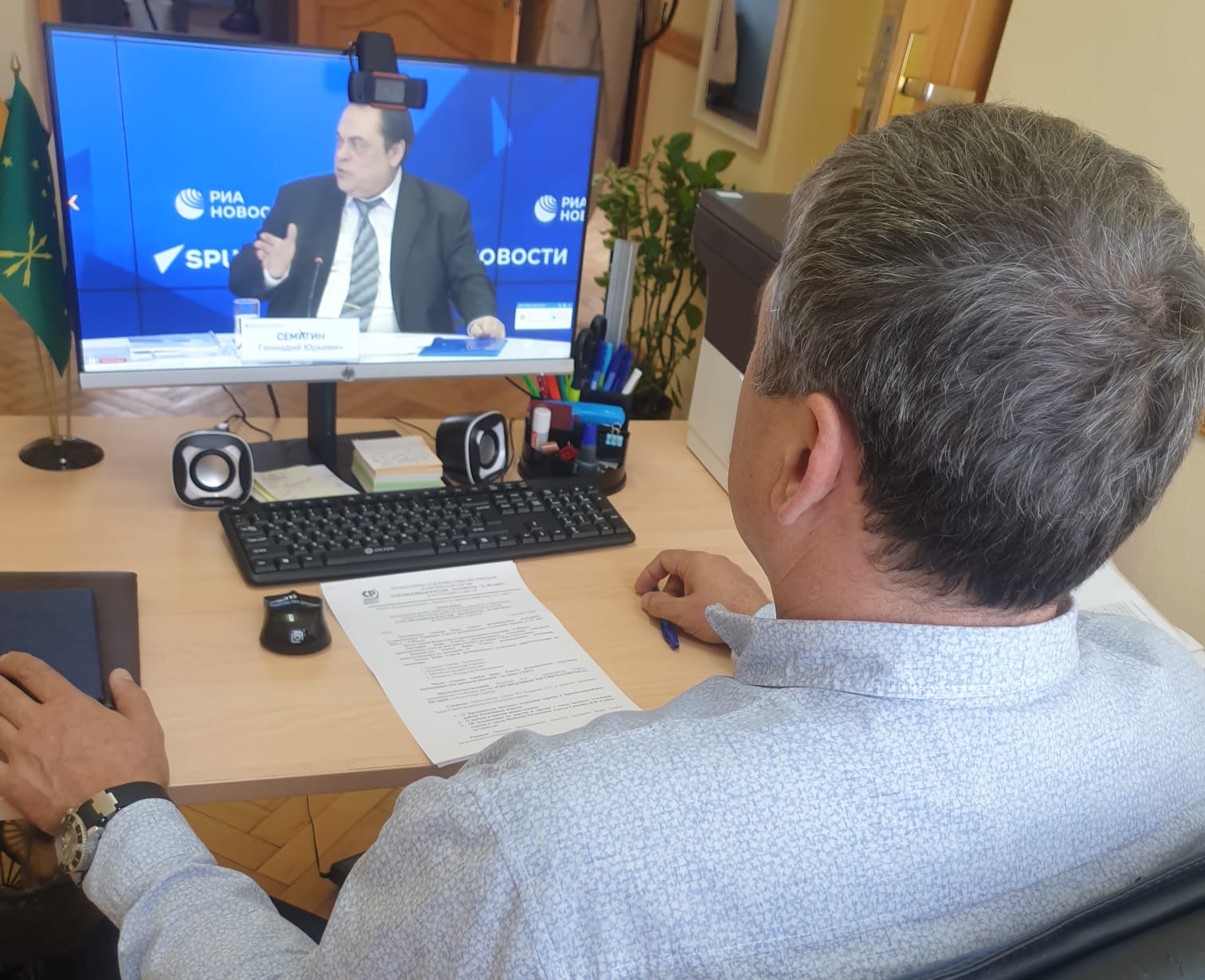 Сегодня в режиме видеосвязи Председатель Совета регионального отделения Альберт Османов принял участие в пресс-конференции председателя Комитета Государственной Думы Российской Федерации по делам национальностей Геннадия СЕМИГИНА.