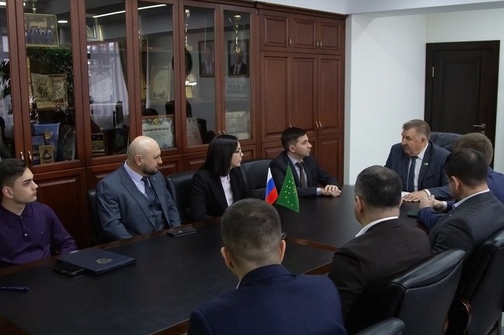 Фото: пресс-служба Госсовета-Хасэ РА В рамках празднования 80-летия Победы спикер Госсовета-Хасэ Владимир Нарожный вместе с председателем профильного комитета парламента Темботом Шовгеновым провел рабочую встречу с пр