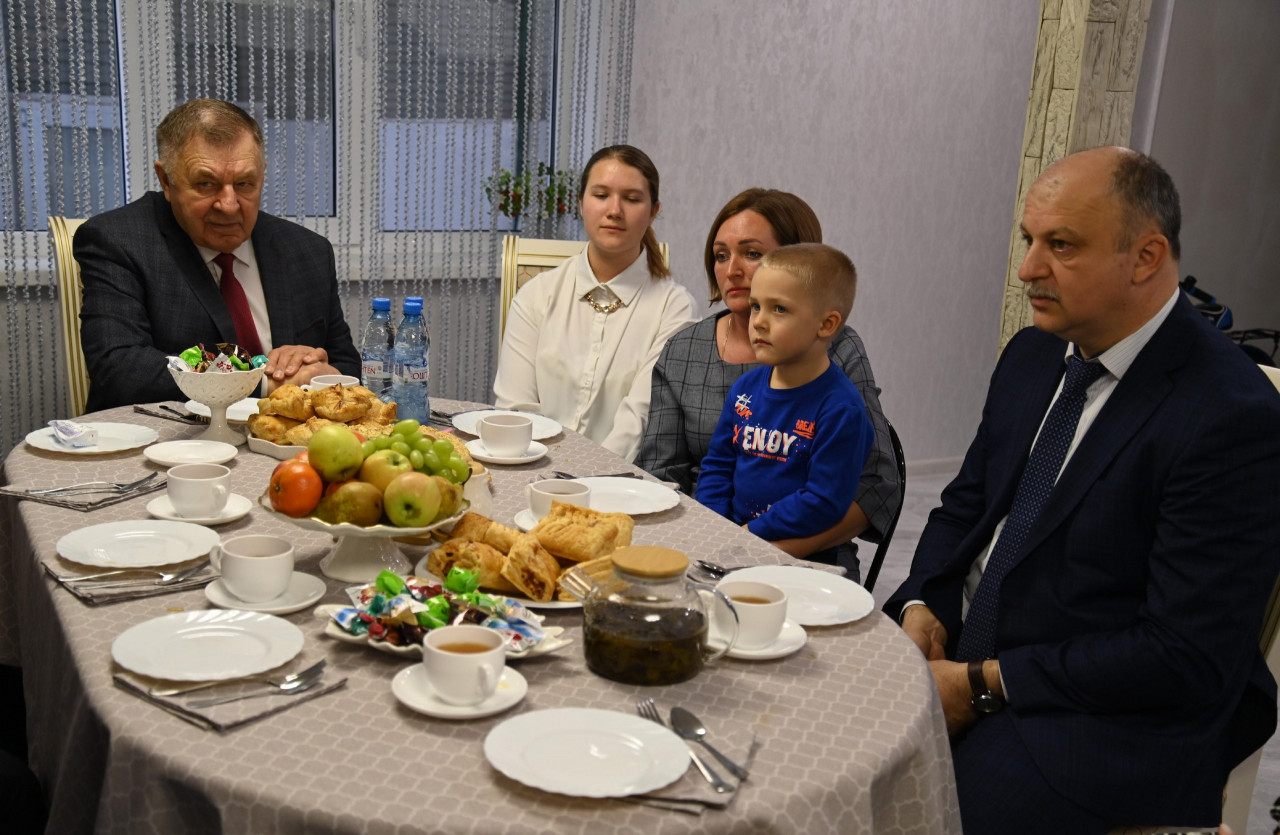 Владимир Нарожный, Джанбеч Мирза, Андрей Таранухин, Татьяна Черкова, Александр Купин и Ирина Викленко посетили также семью участника СВО- Кузуба Павла Васильевича,