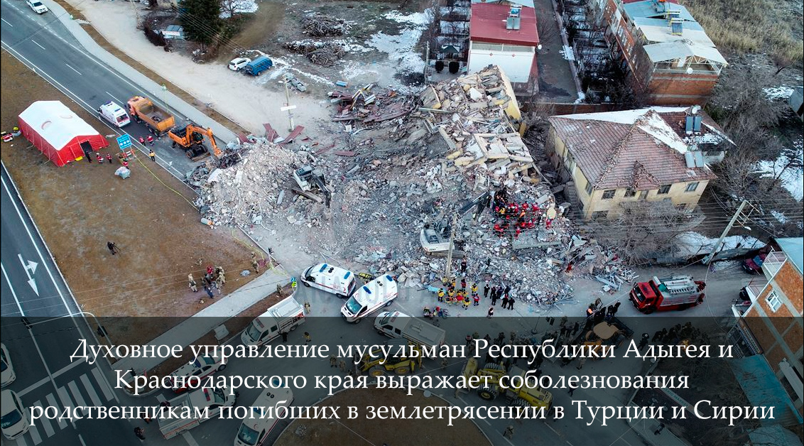 Духовное управление мусульман Республики Адыгея и Краснодарского края от имени мусульман двух регионов выражает соболезнования родственникам погибших в землетрясении в Турции и Сирии.