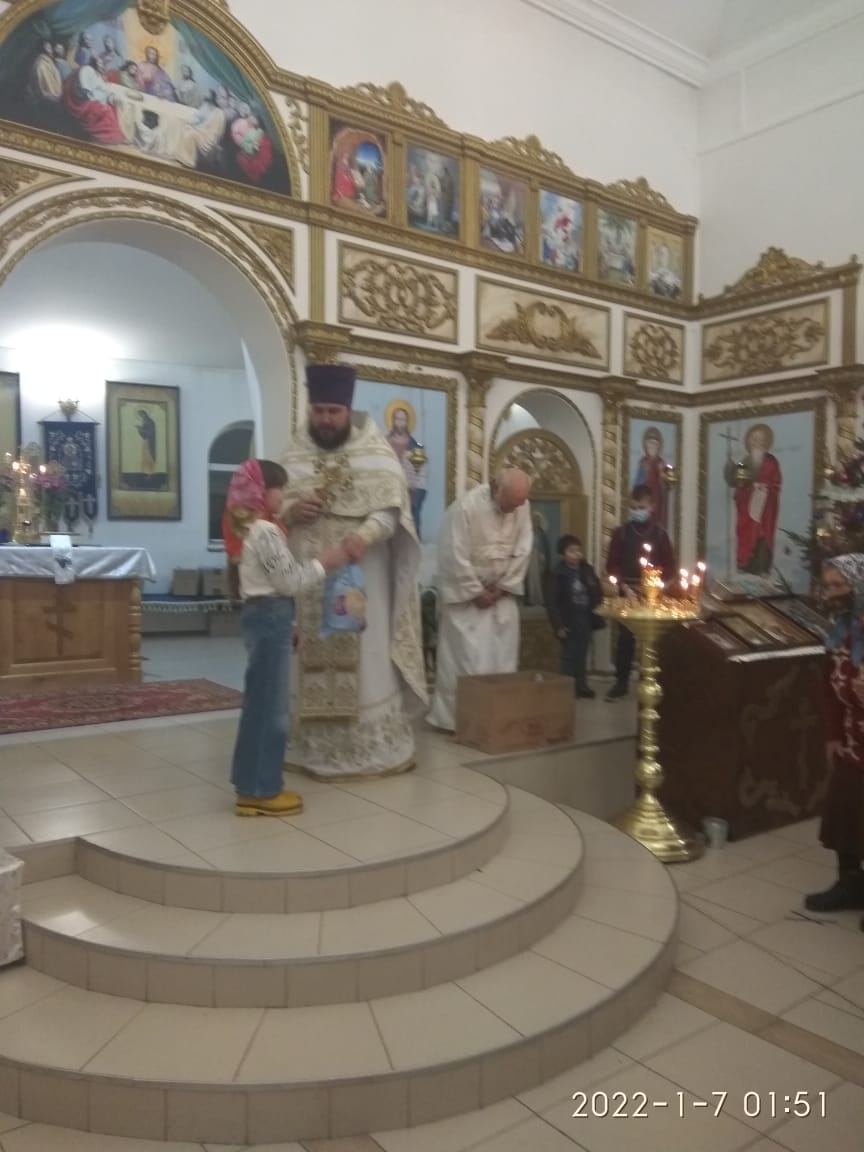 7 января после ночной службы дети рассказывали стихотворение о Рождестве Христовом в Свято-Покровском храме села Натырбово.