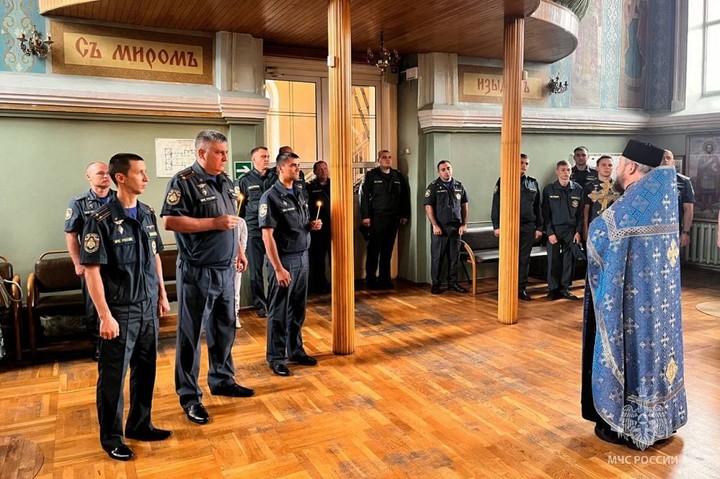 Сотрудники МЧС собрались в Свято-Троицком соборе для молитвы и благодарности.