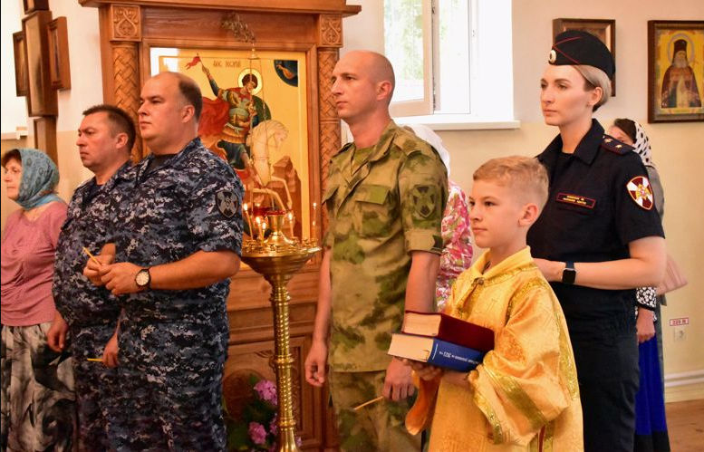 Вместе с настоятелем храма протиереем Георгием Нехаевым росгвардейцы помолились о здоровье и благополучии сослуживцев и всех защитников Отечества, укреплении мира и правопорядка в стране.