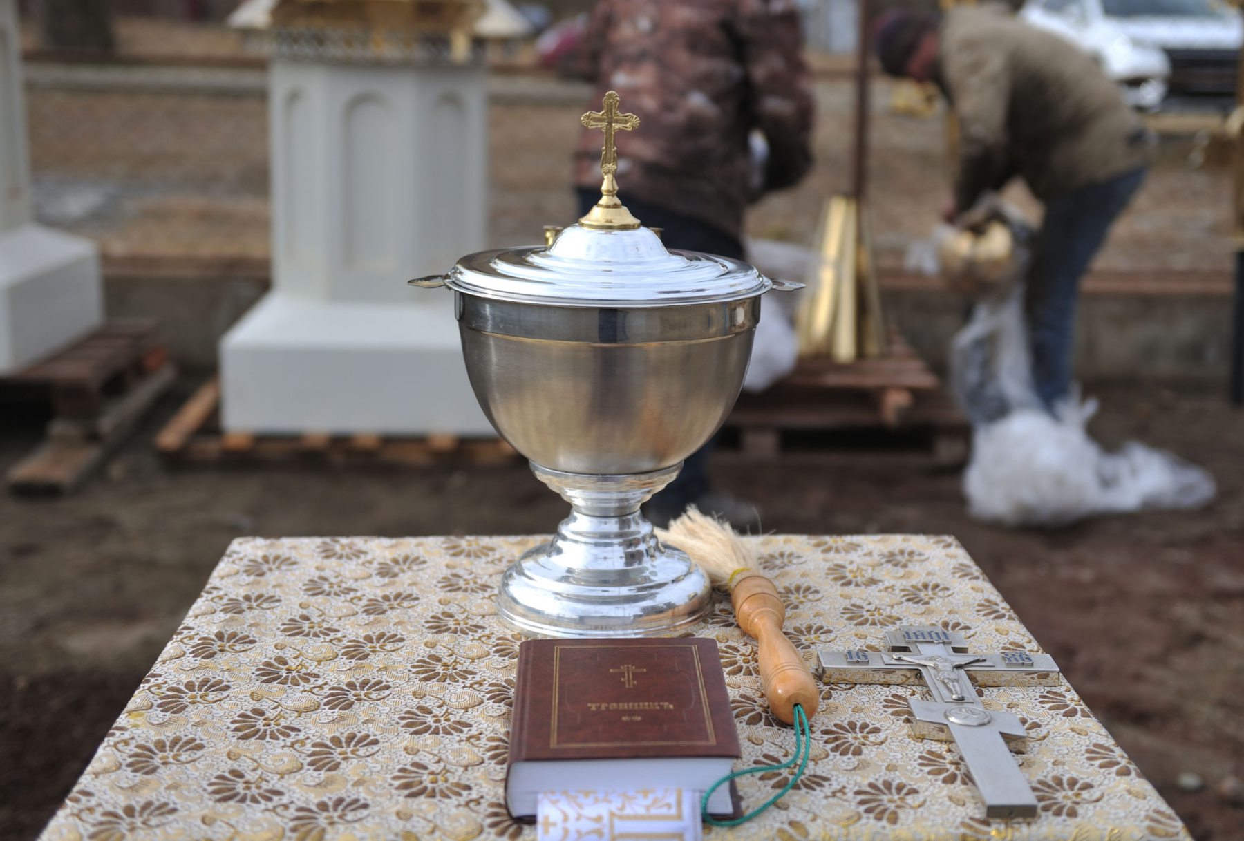 По благословению Архиепископа Майкопского и Адыгейского Тихона, чин освящения возглавил благочинный Первого Майкопского благочиния иерей Георгий Кинцурашвили. Ему сослужили настоятель Свято-Покровского храма станицы Ханской священник Сергий Малышев и настоятель строящегося храма священник Димитрий Шамин.