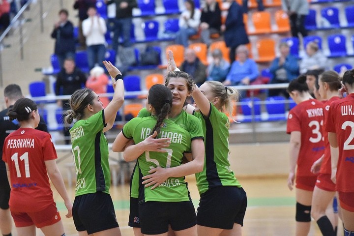 На перерыв команды ушли при равном счете 15:15, но в итоге майкопчанки победили 33:29.