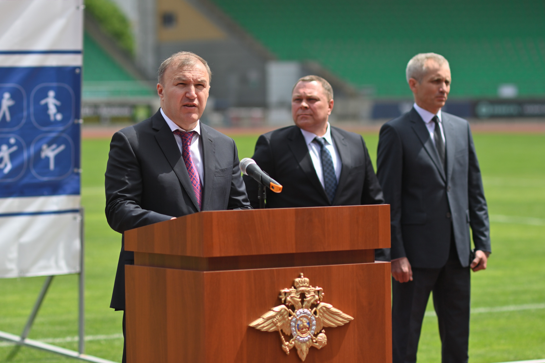 На республиканском стадионе состоялось торжественное мероприятие, посвящённое 100-летию образования Всероссийского физкультурно-спортивного общества «Динамо». Гостей и участников поприветствовал глава Адыгеи Мурат Кумпилов.