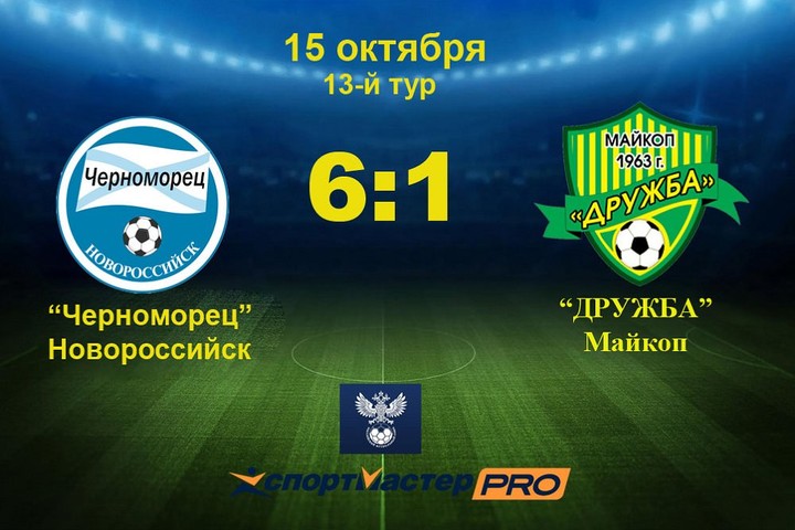Майкопская «Дружба» провела матч 13-го тура чемпионата России второго дивизиона в Новороссийске, где её соперником был местный «Черноморец».
