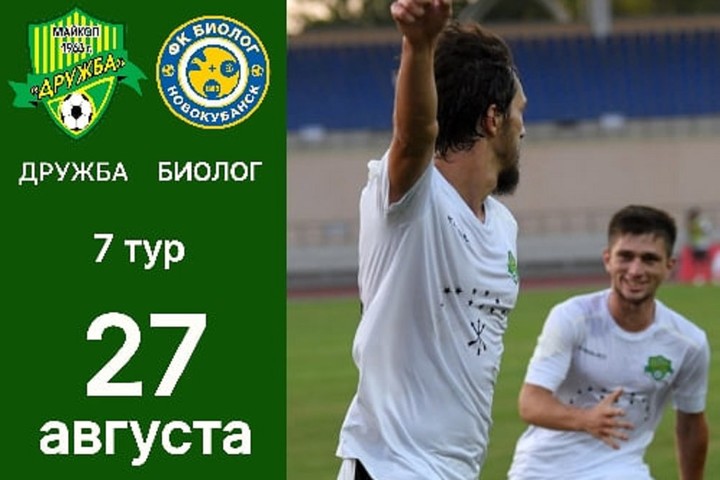 Майкопская «Дружба» в матче 7-го тура LEON Второй лиги Б сыграет с новокубанским «Биологом». Игра состоится в Майкопе 27 августа.