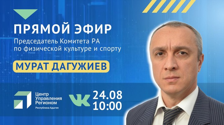 Региональный ЦУР проведет прямой эфир с председателем Комитета Республики Адыгея по физической культуре и спорту Муратом Дагужиевым.