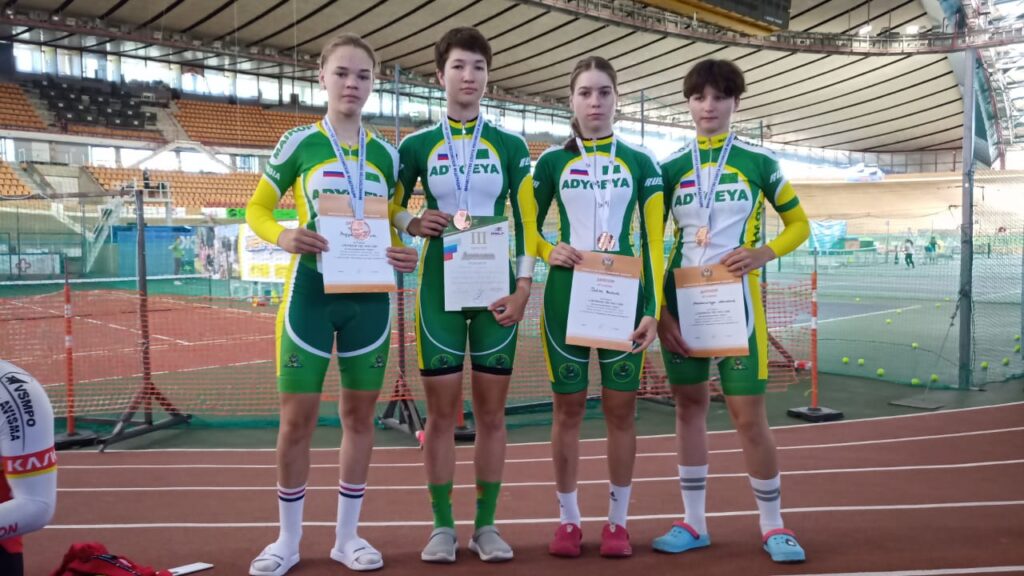 Сборная команда Адыгеи по велосипедному спорту в дисциплине “трек”, выиграла третье место в командной гонке преследования на первенстве России в Москве.