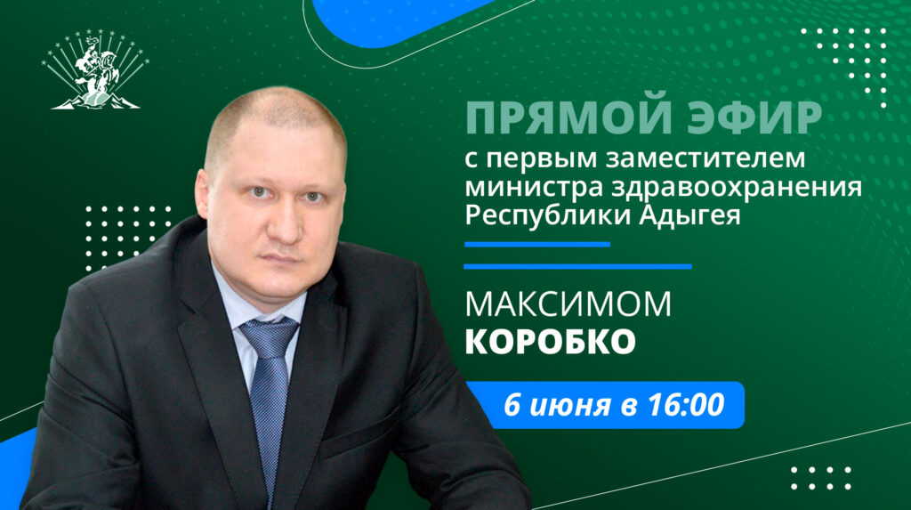 Центр управления регионом Адыгеи 6 мая в 16:00 проведет прямой эфир с первым заместителем министра здравоохранения республики Максимом Коробко.