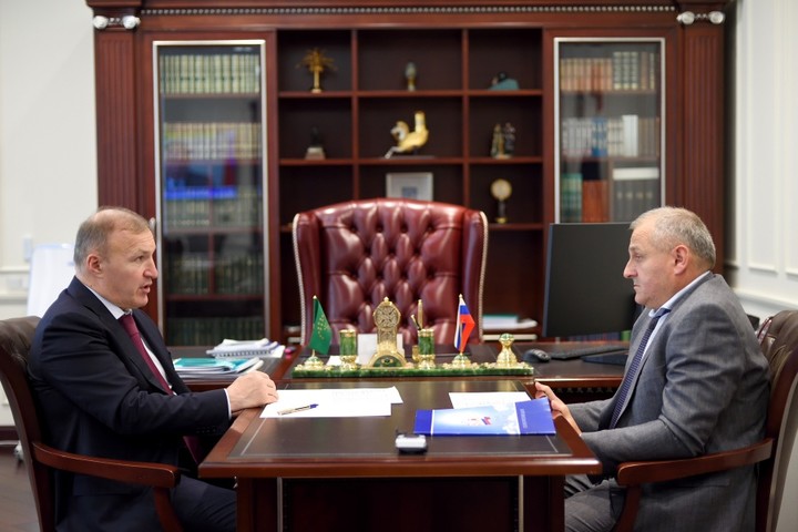 Глава Адыгеи Мурат Кумпилов принял управляющего Отделением Пенсионного фонда России по Республике Адыгея Хамида Мешлока .