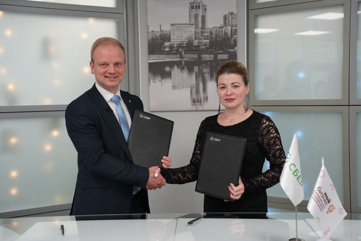 Соглашение о развитии совместных проектов и инициатив подписали 19 декабря 2024 года в Донецке Управляющий Головным отделением Сбербанка Евгений Серяпин и руководитель Центра «Мой бизнес» Любовь Луговая.