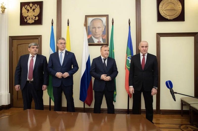 В Черкесске глава Адыгеи Мурат Кумпилов, глава КЧР Рашид Темрезов и глава КБР Казбек Коков, а также губернатор Ставропольского края Владимир Владимиров обсудили возможность проведения совместных праздничных мероприятий в столицах регионов, а также в Москве, сообщил глава Адыгеи на своей странице в инстаграме.