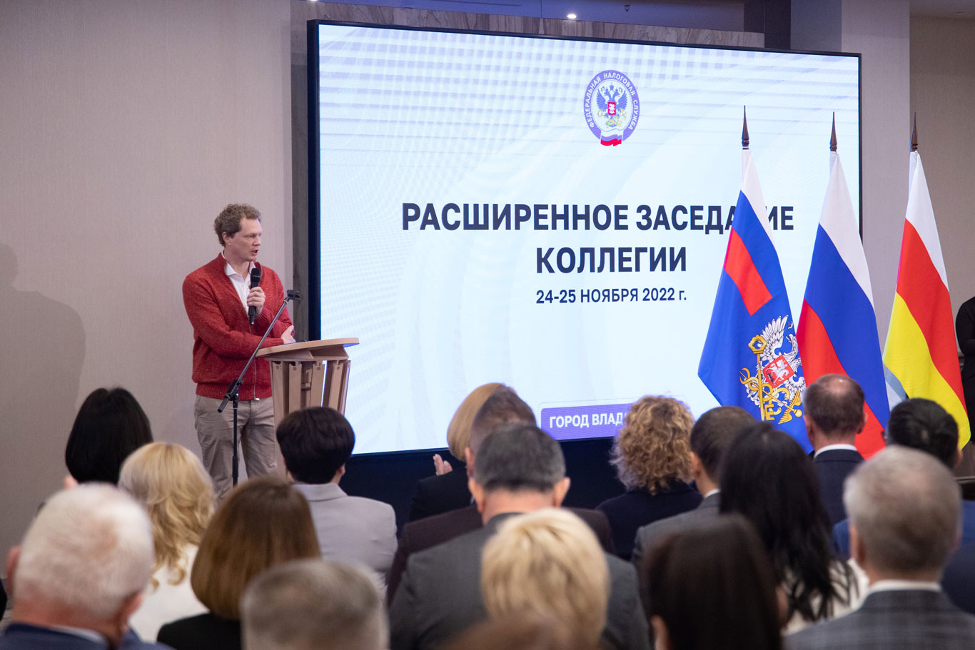 Во Владикавказе состоялось выездное заседание расширенной коллегии ФНС России. Глава ведомства Даниил Егоров поздравил коллег с прошедшим Днем работника налоговых органов, высоко отметив их вклад в работу не только ФНС, но и Правительства РФ: «Информационные системы Службы обеспечивают реализацию проектов, цель которых быстрое оказание мер поддержки, выработанных Правительством РФ. Не обременяя людей и предприятия бумажной волокитой».