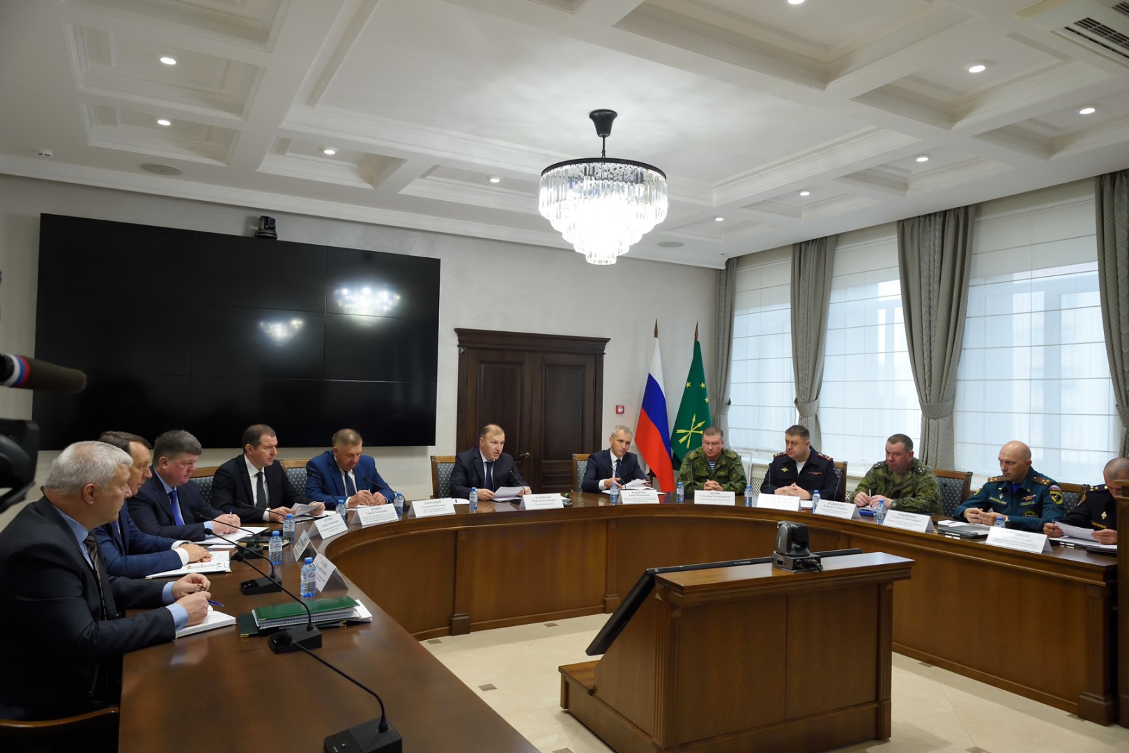 Глава Республики Адыгея Мурат Кумпилов провел первое заседание оперативного штаба РА, созданного в соответствии с Указом Президента Российской Федерации о введении в регионах ЮФО режима повышенной готовности.