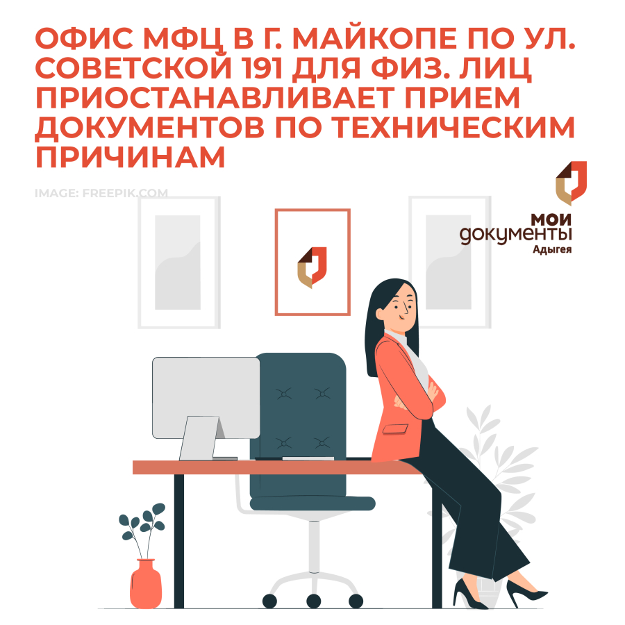 С 11 по 25 декабря 2023 года включительно окно МФЦ для обслуживания физических лиц, расположенное по адресу г.Майкоп, ул.Советская 191 (внутри офиса банка Центр-Инвест), приостанавливает прием документов по техническим причинам.