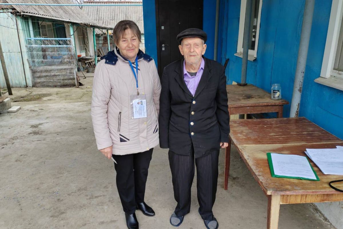Андрей Кравченко – единственный ветеран Великой Отечественной войны,проживающий в станице Гиагинской проголосовал на выборах президента РФ