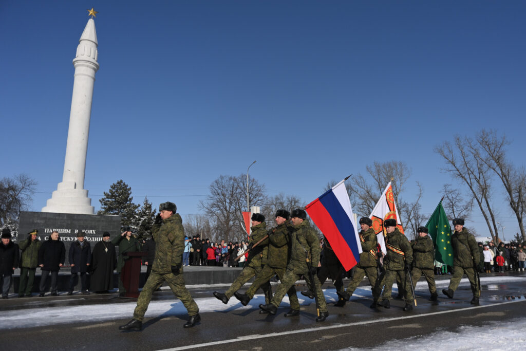 — Сегодня военнослужащие разных национальностей России, выполняя приказ верховного главнокомандующего Владимира Владимировича Путина, как их предки в годы Великой Отечественной войны, героически сражаются с украинскими националистами, чтобы не допустить распространения коричневой чумы. Все, кто сегодня стоит в этом строю, должны быть достойными продолжателями славных традиций Вооруженных сил России, ее побед и героев! — отметил Мурат Кумпилов.