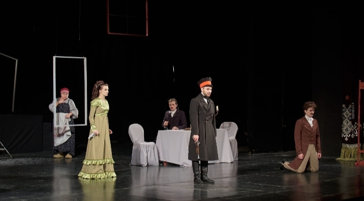 Русский государственный драматический театр им. А.С. Пушкина выступил со спектаклем «Выстрел в метель» по мотивам произведений А.С. Пушкина в постановке главного режиссера театра Татьяны Дрожжиной.