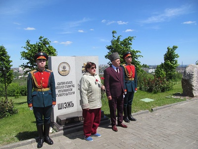 На Мамаевом кургане в Волгограде мы посетили памятник воинам из Адыгеи, защищавшим Сталинград. Памятник выполнен в виде раскрытой Книги памяти, на ее страницах – плитах высечены слова на русском и адыгейском языках: «Вечная слава сыновьям и дочерям Адыгеи – защитникам Сталинграда». Каждый из нас возложил горсть земли Адыгеи и цветы к этому мемориалу.