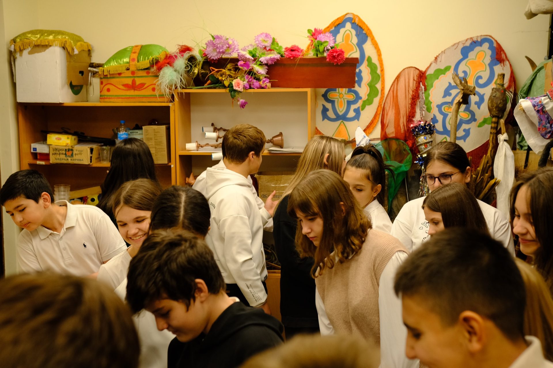 Родители Аслана Зехова и Святослава Нуреева работают в театре. Вместе с одноклассниками они посетили место работы своих отцов, где для них провели экскурсию и мастер-классы.