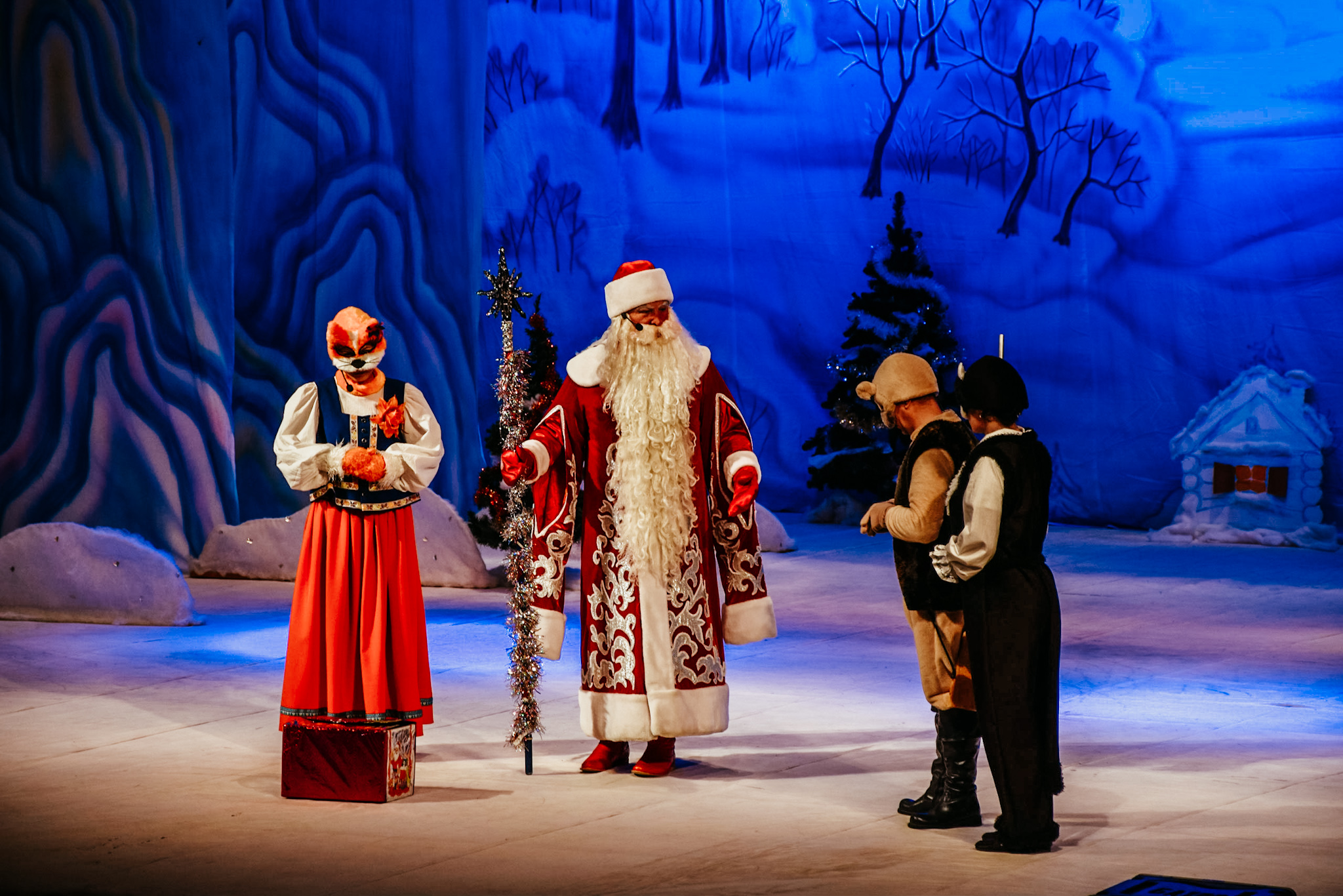 Творческий коллектив Государственной филармонии Адыгеи и труппа театра кукол «Золотой кувшин» подарили зрителям новогодний спектакль. В этом году дети и сопровождающие их взрослые с интересом следили за приключениями сказочных персонажей, чьи образы на сцене воплотили артисты в пьесе «Морозко» Марины Батория.
