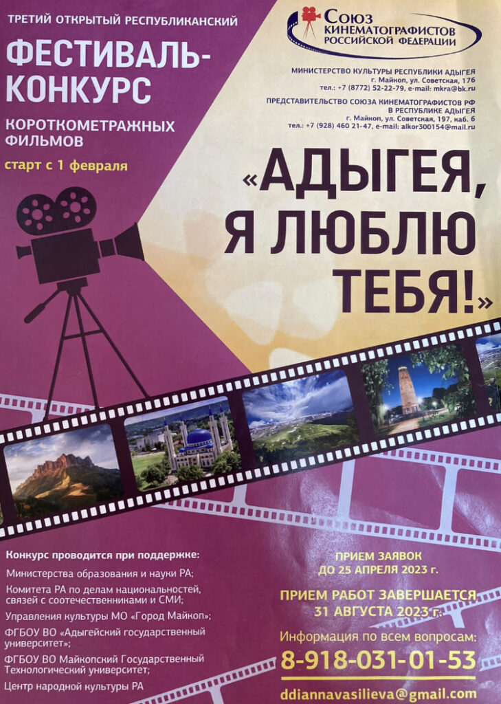 Учредители и организаторы конкурса – Министерство культуры Адыгеи и Представительство Союза кинематографистов РФ в республике.