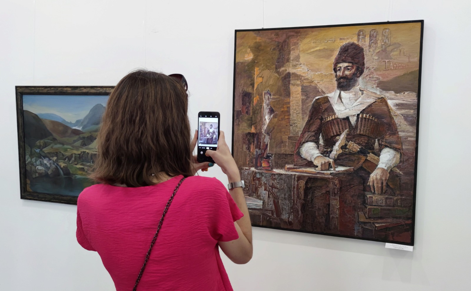 Больше всего на выставке работ художественного искусства. Среди картин большое внимание уделено пейзажу. Золотые поля и узнаваемые очертания гор – визуальная визитная карточка родной республики – вдохновляли своей красотой почти всех местных мастеров.