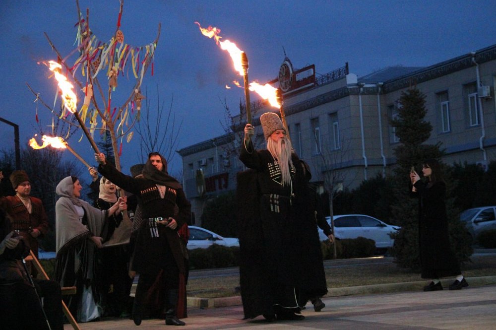В этот вечер природа тоже была милостива к людям и не затушила ритуальных факелов ни дождем, ни сильным ветром. По традиции, факельное шествие, украсившее площадь ритуальным деревом, возглавил старец, который известил всех о начале праздника. Согласно народному поверью, огонь, зажженный от его факела, обладал чудодейственной силой и уберегал от болезней и злых сил.
