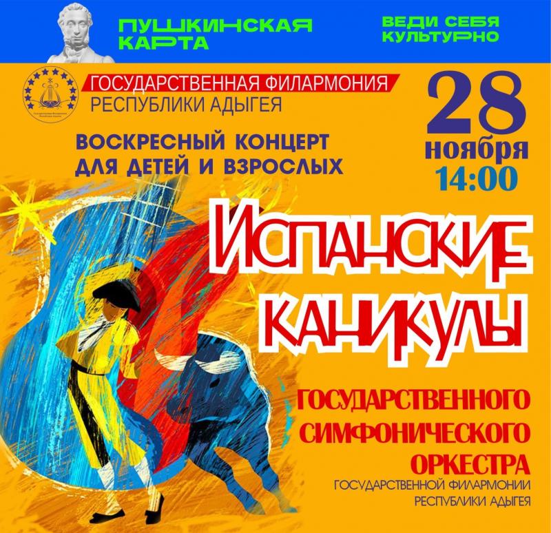 Государственного симфонического оркестр Адыгеи подготовил концерт «Испанские каникулы» для детей и взрослых, говорится в сообщении Министерства культуры республики.