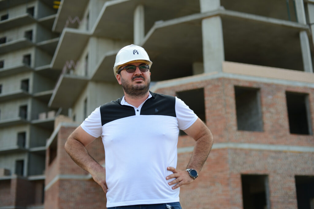 Сегодня Эльдар руководит возведением многоквартирного дома по улице Пирогова, 4. Всего здесь будет четыре блок-секции — четыре подъезда. Первый из них состоит из 16 этажей, причем 15 и 16 этажи займет двухъярусный пентхаус — одна квартира на два этажа, со своей лестницей и террасами.