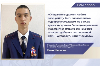 В проекте «Вам слово!» участвует Иван Шарапов – учащийся 11 класса Лицея №8 имени Жени Попова г. Майкопа Республики Адыгея.