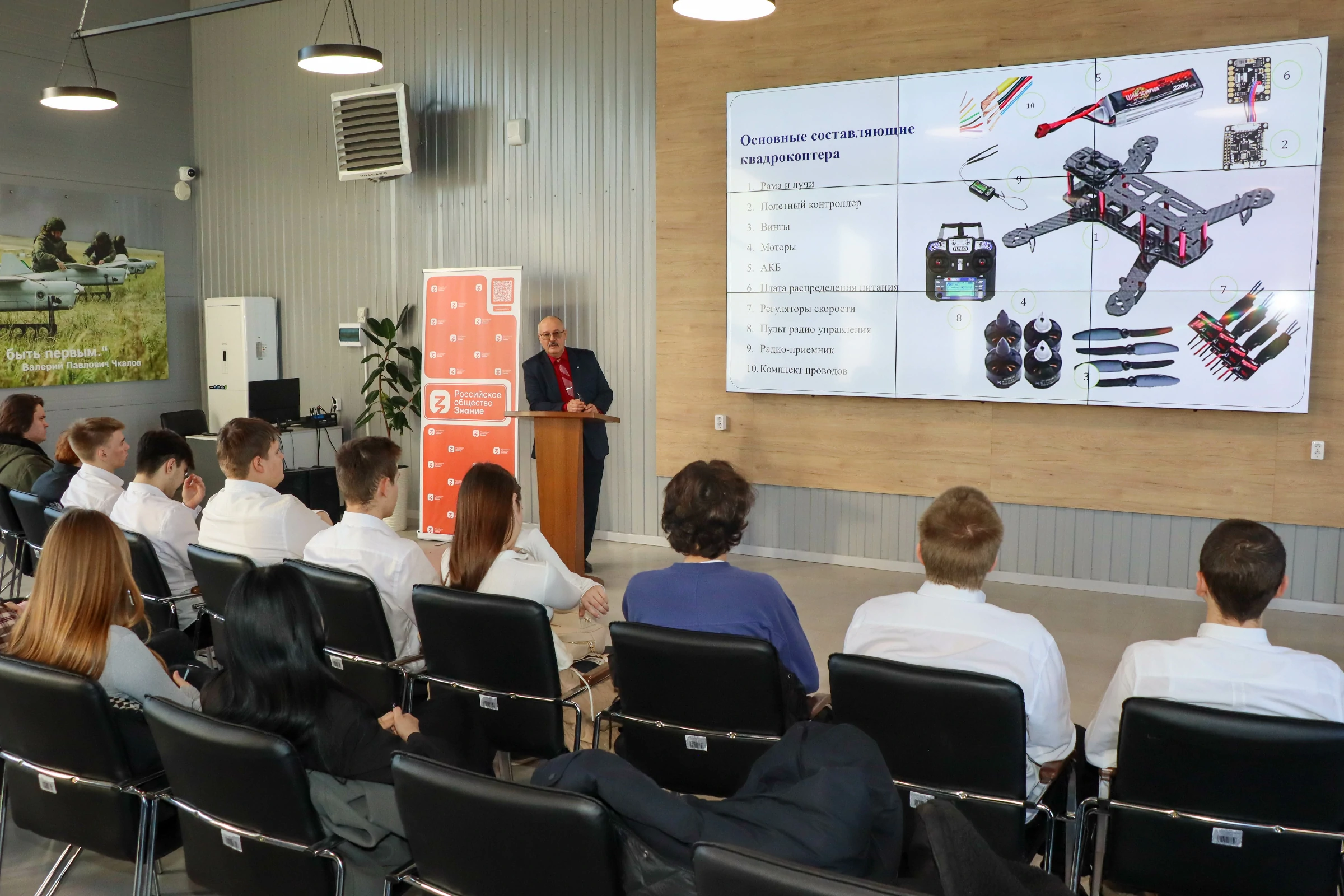 Далее лекцию на тему «Основы БПЛА» провел начальник лаборатории проектирования, эксплуатации и ремонта беспилотных летательных аппаратов, лектор Российского общества «Знание» Виталий Гончаров. Он рассказал о принципах работы беспилотных авиационных систем, их применении в различных сферах и перспективах развития данной технологии. Лекция сопровождалась демонстрацией оборудования, школьники наглядно увидели процесс работы с беспилотниками.