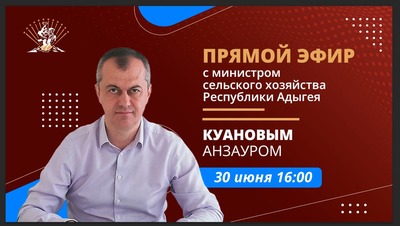 Центр управления регионом Адыгеи организует прямой эфир с министром сельского хозяйства республики Анзауром Куановым. Трансляция пройдет 30 июня в 16:00 на официальной странице ведомства ВК ( https://vk.com/mcxra01 ). В ходе прямого эфира спикер ответит на актуальные вопросы развития агропромышленного комплекса республики.