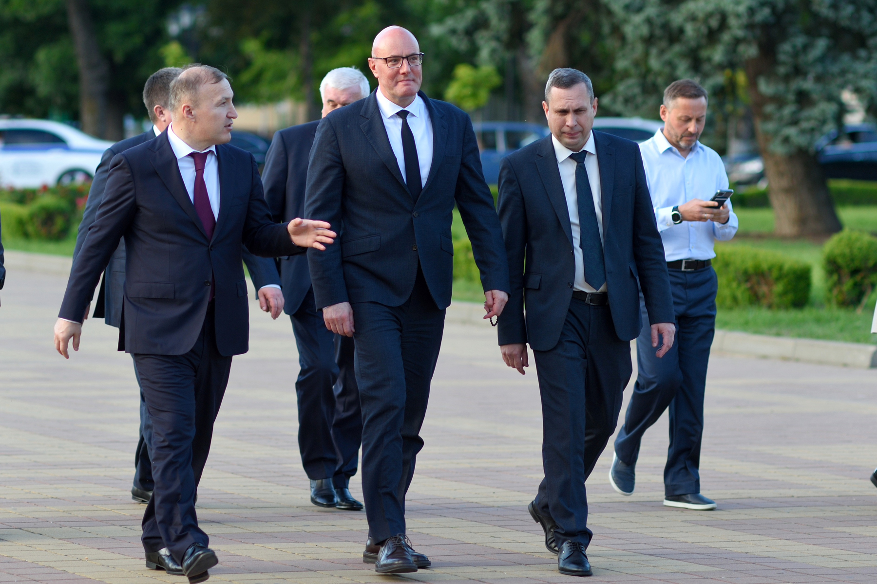 В рамках осмотра парка Дмитрий Чернышенко и Мурат Кумпилов посетили стадион «Дружба», где пообщались со спортсменами футбольного клуба. После вице-премьер заехал в лицей №8, в котором учился, и пообщался со своими учителями.