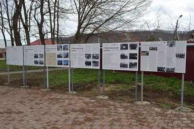 Второй стенд «Партизанская тропа» содержит информацию о гитлеровских частях, в августе 1942 года двигавшихся к Майкопу, и противодействии им подразделений РККА с фотодокументами бойцов 40-й омсб и их командира Н.Ф. Цепляева. На третьем приведена схема положения войск на Белореченском перевале по данным на 30 октября 1942 года, а также цветные фотографии обелисков, установленных в послевоенное время в горной части республики. Четвертый и пятый — о партизанском движении Адыгеи, на территории которой в период оккупации базировалось 20 партизанских отрядов из Краснодарского края и Адыгейской автономной области. На последнем помещен информационный бюллетень № 15, где сообщается о присуждении конкурсной комиссией проекту «Партизанская тропа» первого места с предоставлением гранта региональной ветеранской организации, а также об основной идее проекта — военно-патриотическое воспитание подрастающего поколения в совместной деятельности молодежи и ветеранов по восстановлению исторической памяти о Великой Отечественной войне, реконструкции памятников, создания «маршрутов памяти» и краеведческой деятельности.