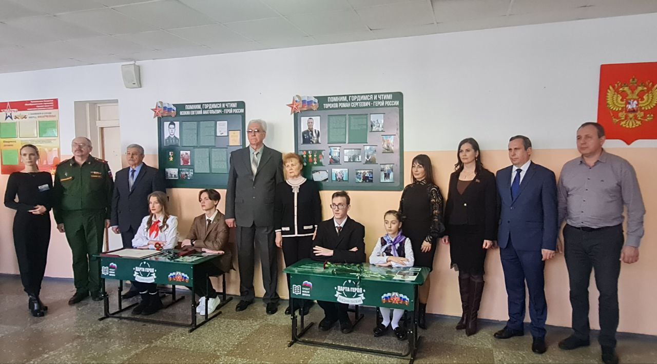 – На установленных партах отображена биография бойцов, их портреты и информация о заслугах перед Отечеством. На церемонии право первыми сесть за Парты Героев было предоставлено лучшим ученикам школы, которые преуспели в учебе и общественной жизни, а также дочери Романа Торохова – Валерии Тороховой, – говорится в сообщении.