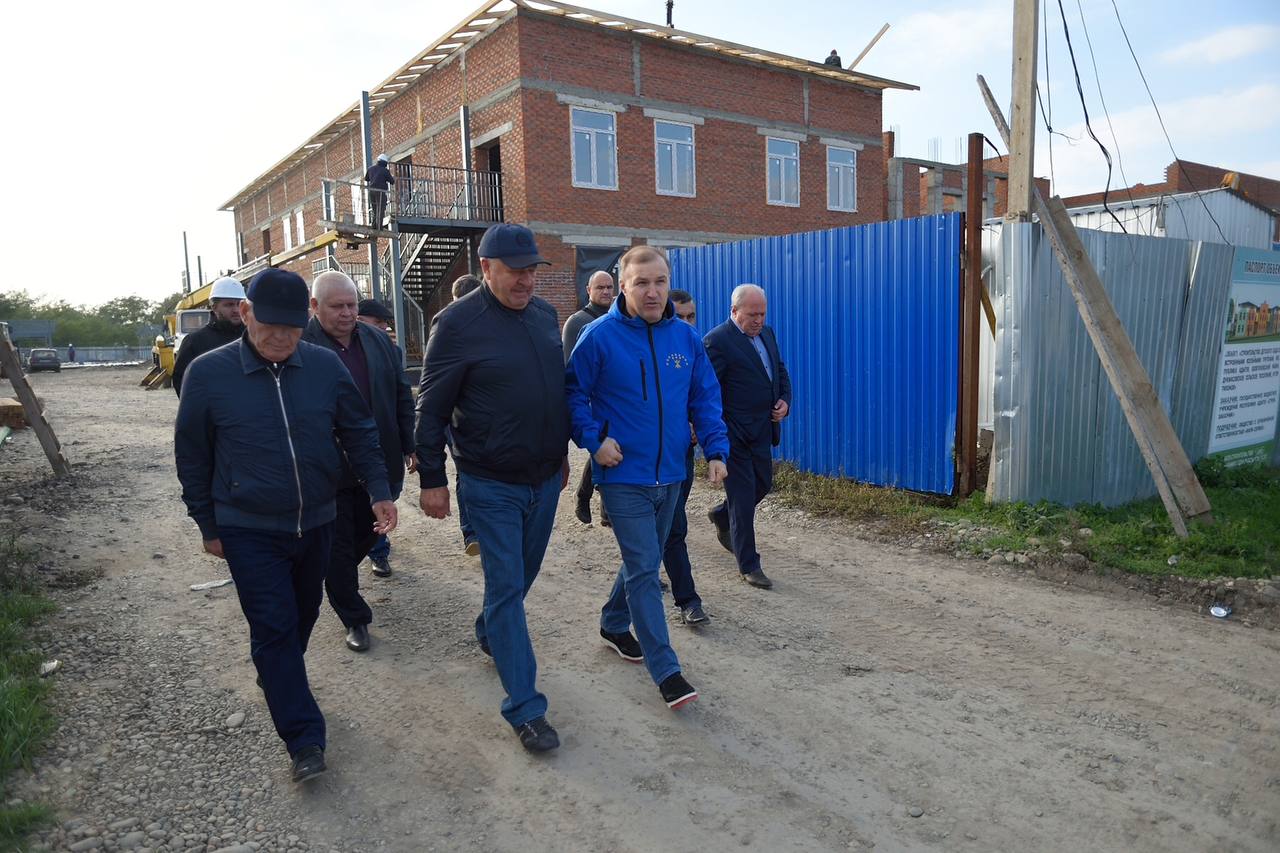 Глава Адыгеи Мурат Кумпилов в рамках рабочей поездки проинспектировал ход строительства детских садов в хуторе Красная Улька Майкопского района и хуторе Тихонов Шовгеновского района.