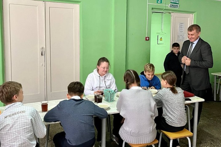 Он подчеркнул, что дети должны получать качественные и сбалансированные обеды, и эта тема волнует его не только как руководителя района, но и как родителя. Поэтому он внимательно ознакомился с рационом бесплатного горячего питания – требованием обеспечены все обучающиеся начальной школы, а также обучающиеся 5-11 классов льготной категории. В том числе 38 школьников из мобилизованных семей.