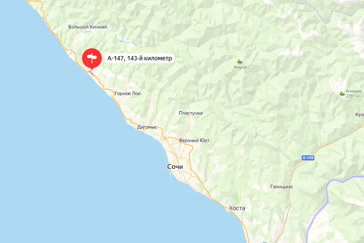 Фото: yandex.ru/maps Реверсивное движение введут с апреля 2022 года на отрезке дороги А-147 между селом Детляжка и поселком Дагомыс.