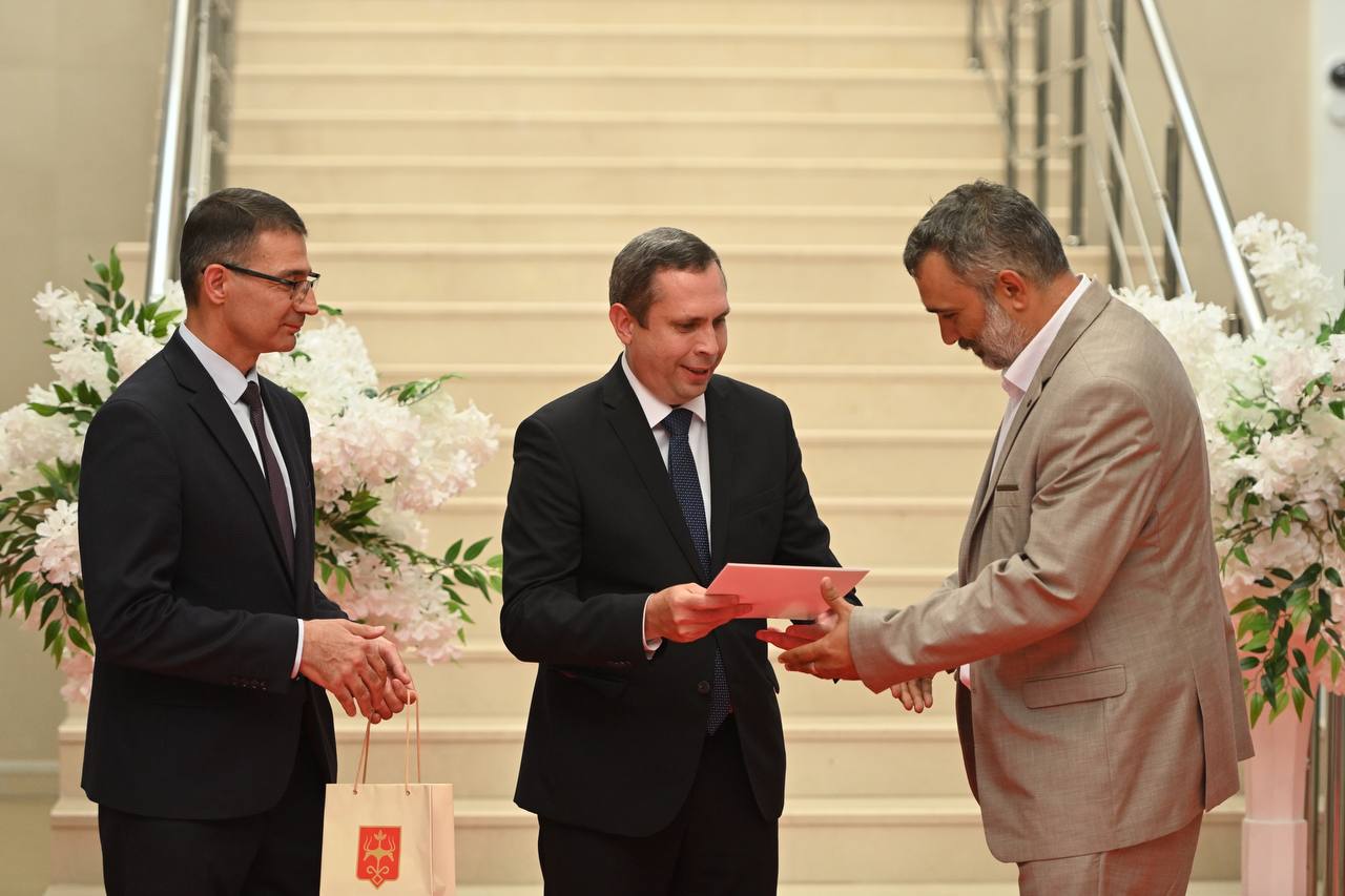 Глава Майкопа Геннадий Митрофанов и председатель Совета народных депутатов Азмет Джаримок вручили заслуженные звания лауреатам муниципальной премии имени братьев Соловьевых.