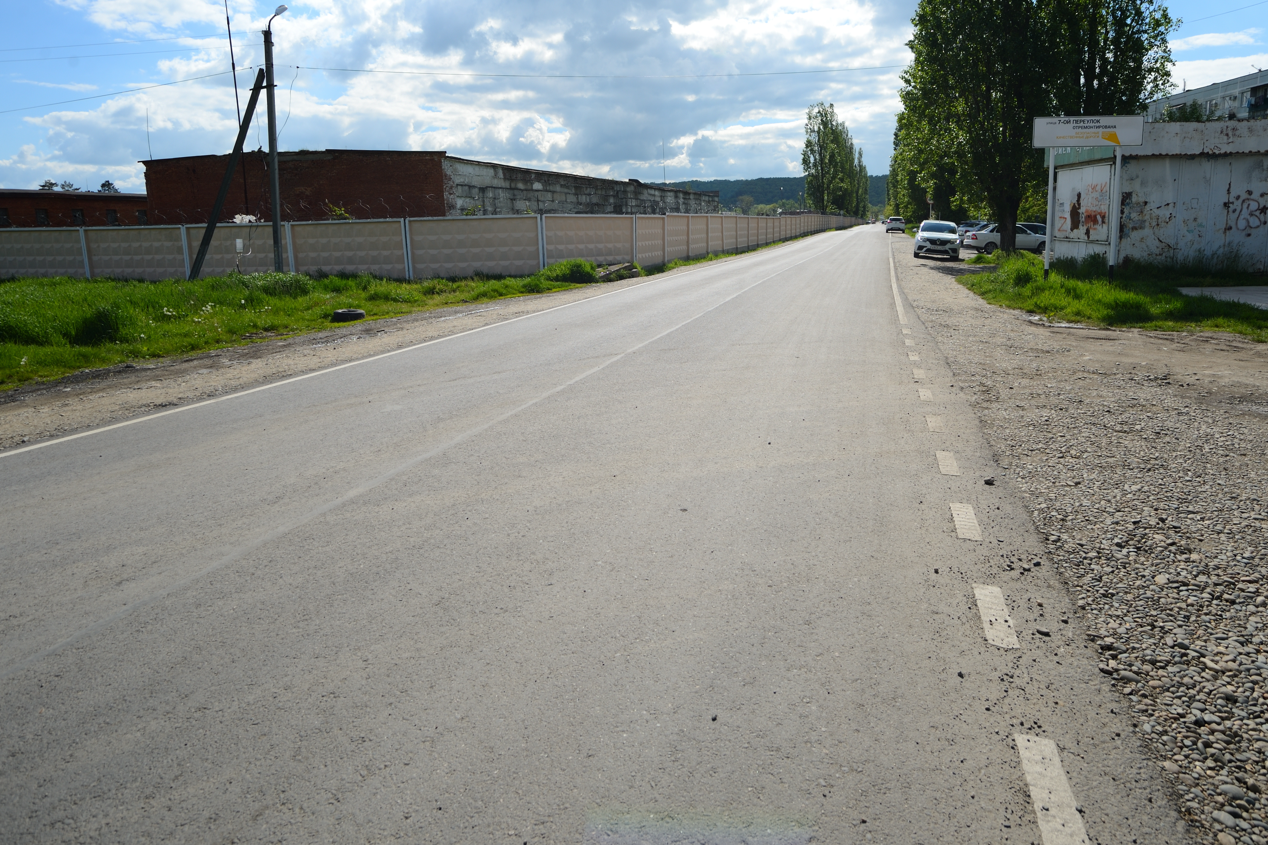 На отрезке дороги протяженностью в 600 метров, от ул. Шоссейной до военной части, обновлено дорожное покрытие, обустроены подходы к перекресткам и въезды во дворы.