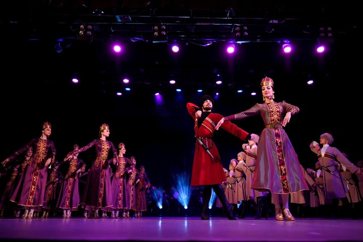 Фото: Телеграм-канал Мурата Кумпилова В Майкопе прошел совместный концерт двух прославленных творческих коллективов – ансамблей «Нальмэс» и «Донбасс».